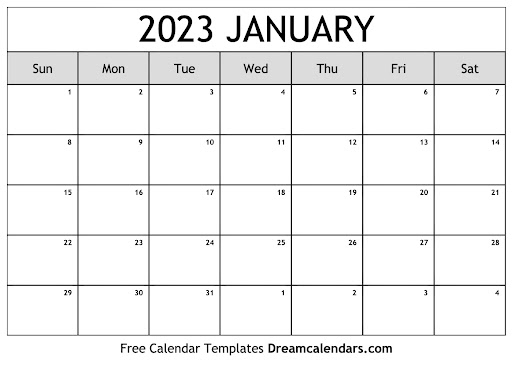Download Printable January 2023 Calendars from www.dreamcalendars.com